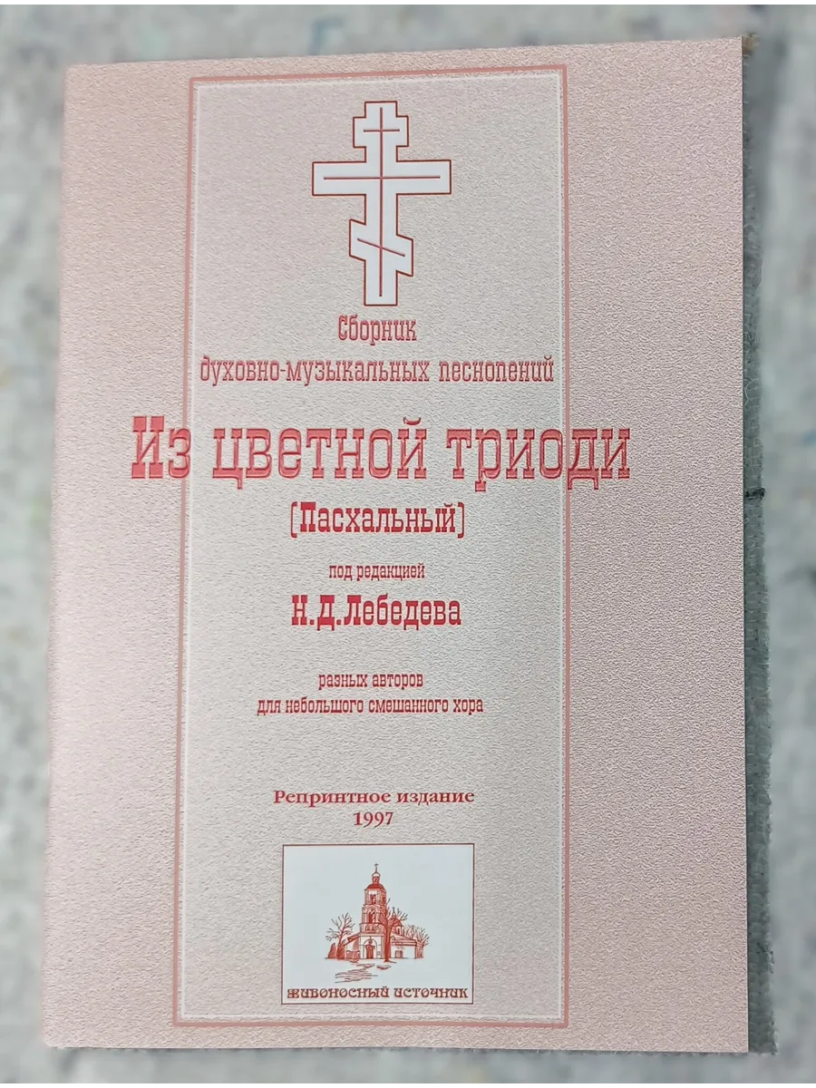 Лебедев Н.Д. Из Цветной Триоди (Пасхальный) 88 страниц, брошюра / репринт 1997 Настоящий сборник является репринтным воспроизведением издания: Сборник духовно-музыкальных песнопений разных авторов для небольшого смешанного хора под редакцией Н.Д. Лебедева: Из цветной триоди (Пасхальный) [№5]. Петроград: П. М. Киреев, ценз. 1913 г. Издательством проведена реставрация нотного текста с исправлением незначительных дефектов высокой печати. Содержит песнопения авторов конца XIX – начала XX века, а также произведения церковного обихода того времени. Предназначен для хоровых коллективов, хормейстеров, регентов и всех интересующихся православной хоровой музыкой.С 1997 года издательство проводит проект репринтного восстановления и воспроизведения серии публикаций известного петербургского издателя, регента петербургского митрополичьего хора Александро-Невской Лавры Поликарпа Мироновича Киреева, выпущенных в период с 1911 по 1917 гг. Эти издания являются своеобразной антологией церковной музыки первой половины XX века. Проводится большая работа по поиску и реставрации этих сборников. ВОСКРЕСЕНИЕ ТВОЕ, ХРИСТЕ СПАСЕИз придворного обиходаХРИСТОС ВОСКРЕСЕИз придворного обиходаФеофанРожнов, №1-2Туренков, № 1-4Неизв. автор №1-2По-греческиПо-грузинскиКАНОН С ТРОПАРЯМИ (ПОЛНЫЙ)СтарорусскийИРМОСЫДегтяревВедельПЛОТИЮ УСНУВГалуппиВедельОбиходноеГрибович, то же (для 2-х Т. и Б.)Неизв. автора (для 2-х Т. и Б.)СТИХИРЫ ПАСХИЛаврскиеУСТ ТВОИХБалакирев (Валаамский распев)ЧАСЫ ПАСХИФеофанСтарорусскийПРЕДВАРИВШИЯ УТРО и АЩЕ И ВО ГРОБСтрокинАНГЕЛ ВОПИЯШЕБортнянскийМакаровБалакирев (Валаамский распев)ДегтяревКочановскийКОНЦЕРТЫТОРЖЕСТВУЙТЕ ДНЕСЬА.ТуренковРАДУЙТЕСЬ ЛЮДИЕСартиПРИИДИТЕ, ВОСПОИМ ЛЮДИЕМузыка неизвестного автораДНЕСЬ ВСЯКА ТВАРЬДегтяревСЕЙ НАРЕЧЕННЫЙДегтяреваПРИИДИТЕ НОВОГО ВИНОГРАДАДегтяревСтарорусский