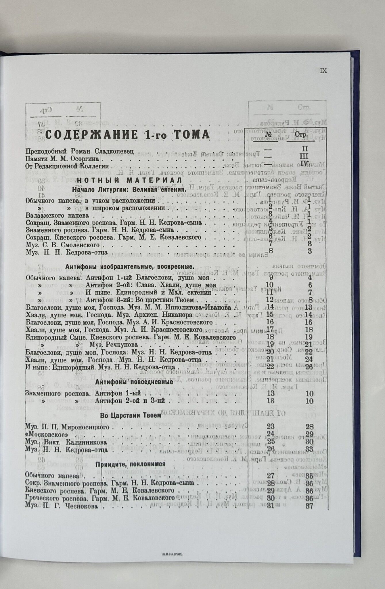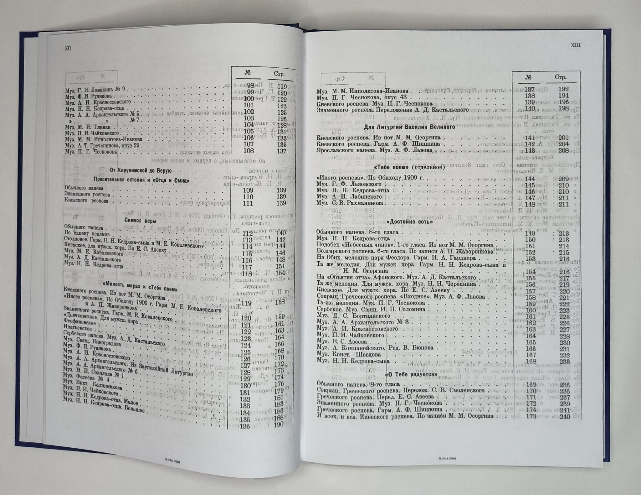 В сборник вошли песнопения разных эпох и направлений, начиная от классицизма до Нового направления Московской школы, а также композиторов русского "рассеяния" первой половины ХХ века. Большинство песнопений рассчитаны на исполнение как небольшим, так и большим смешанным хором. Также включены песнопения для однородного мужского хора.