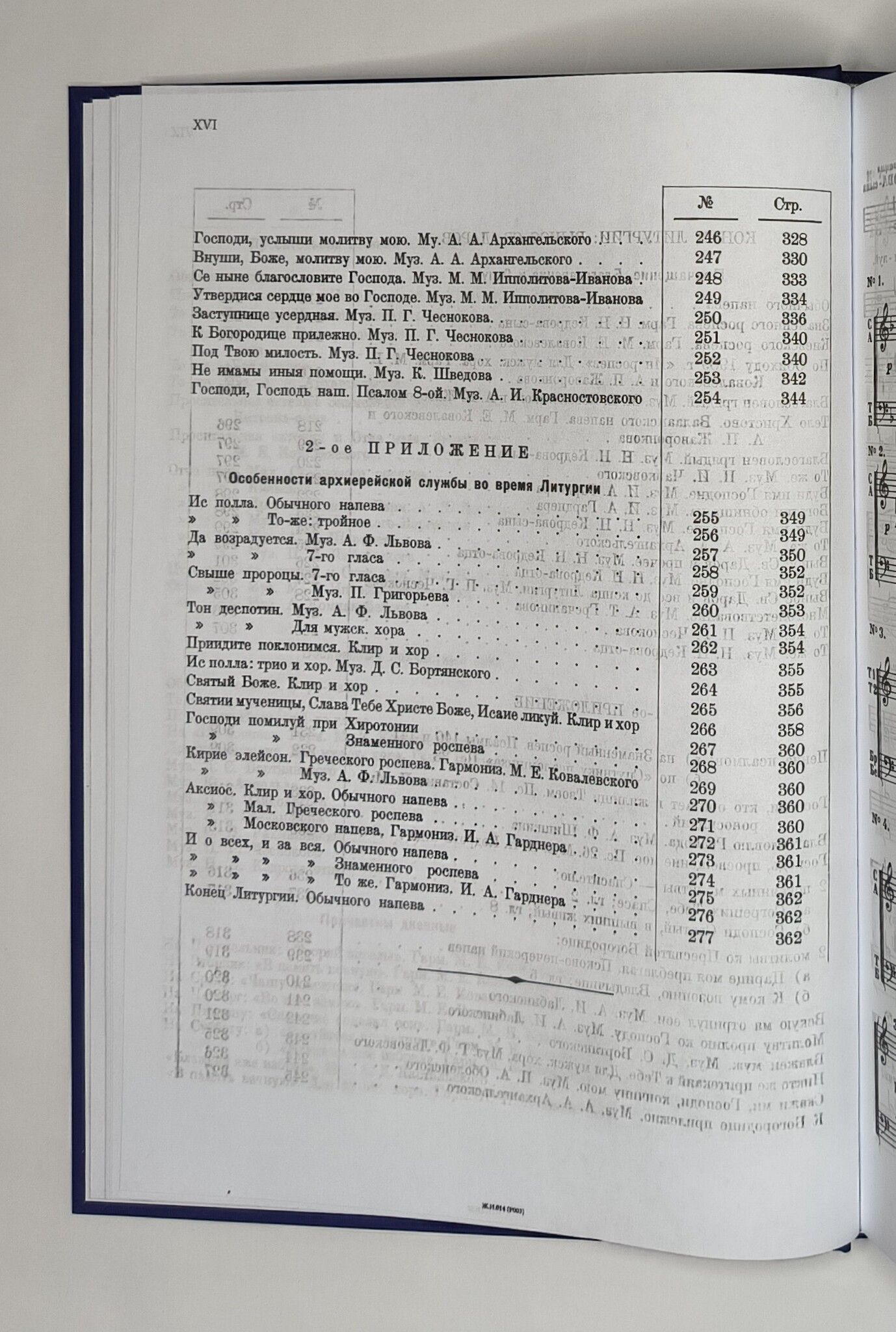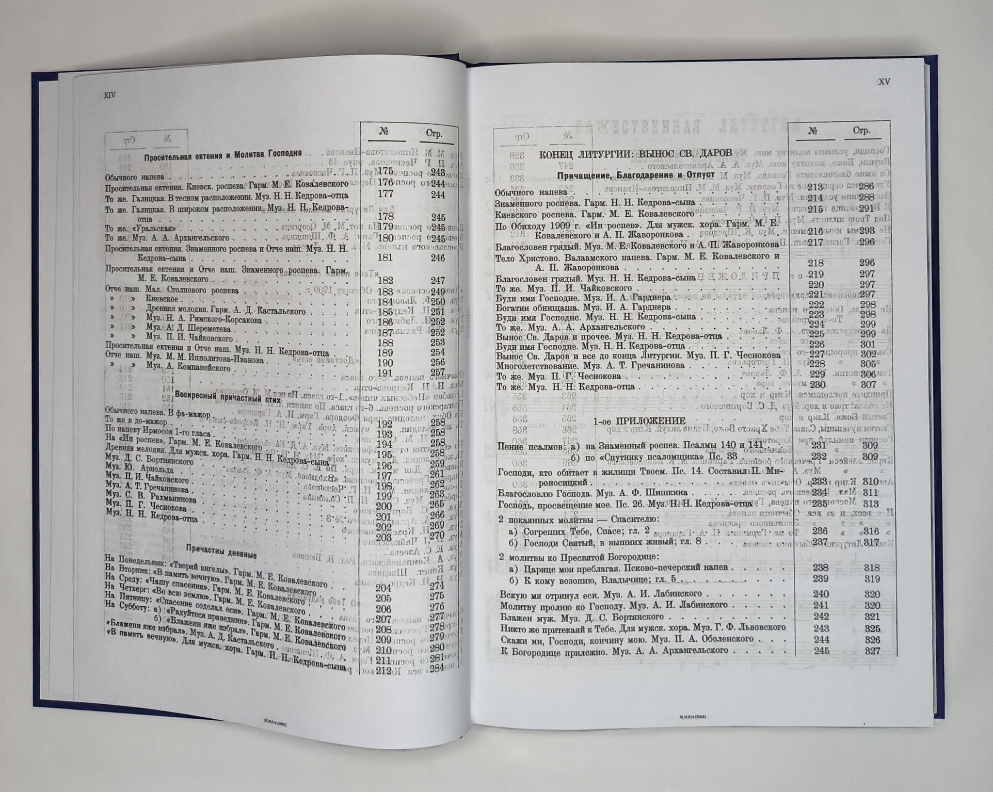 Сборник содержит изменяемые и неизменяемые песнопения Божественной литургии св. Иоанна Златоустого и св. Василия Великого. Приложения к изданию включают образцы пения псалмов, концерты, песнопения архиерейского богослужения.